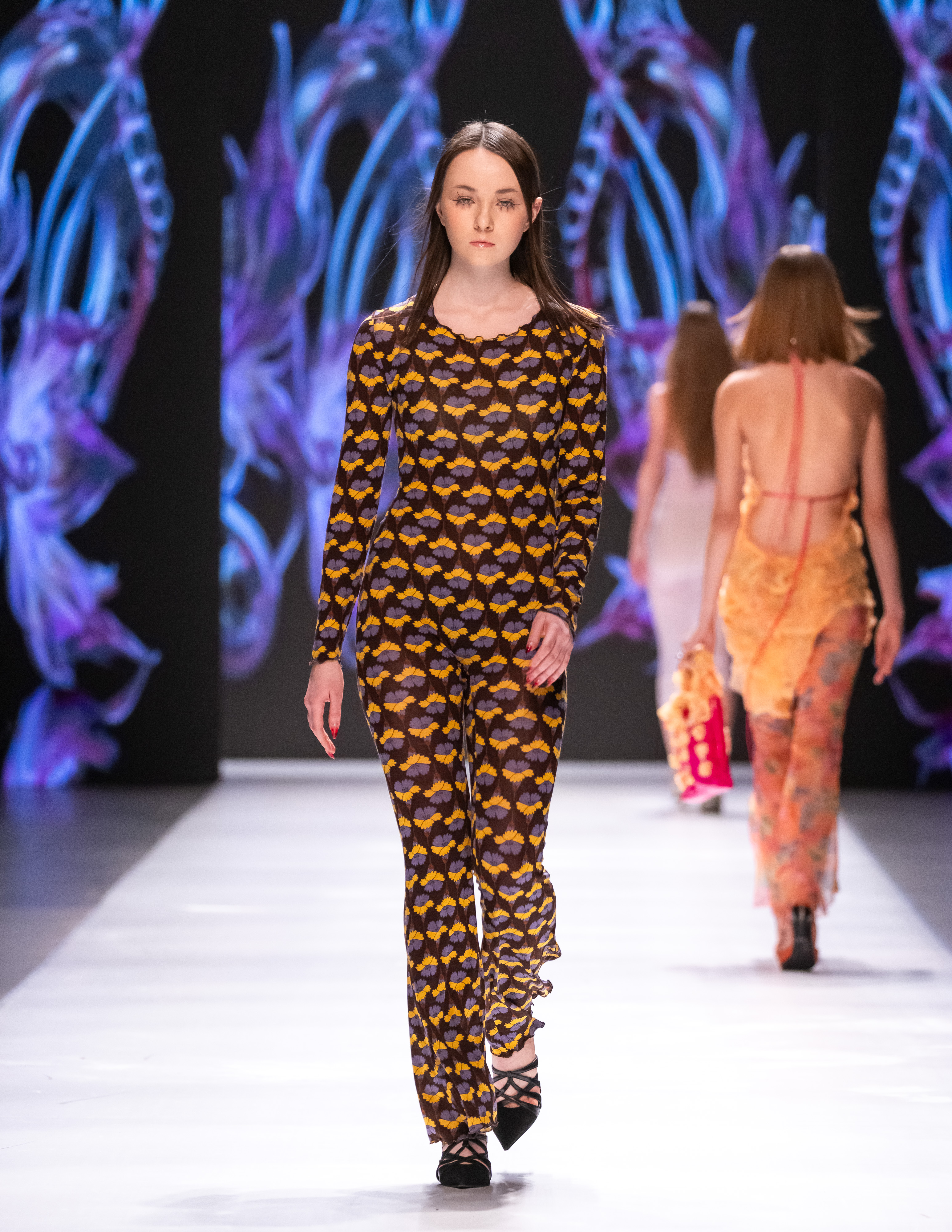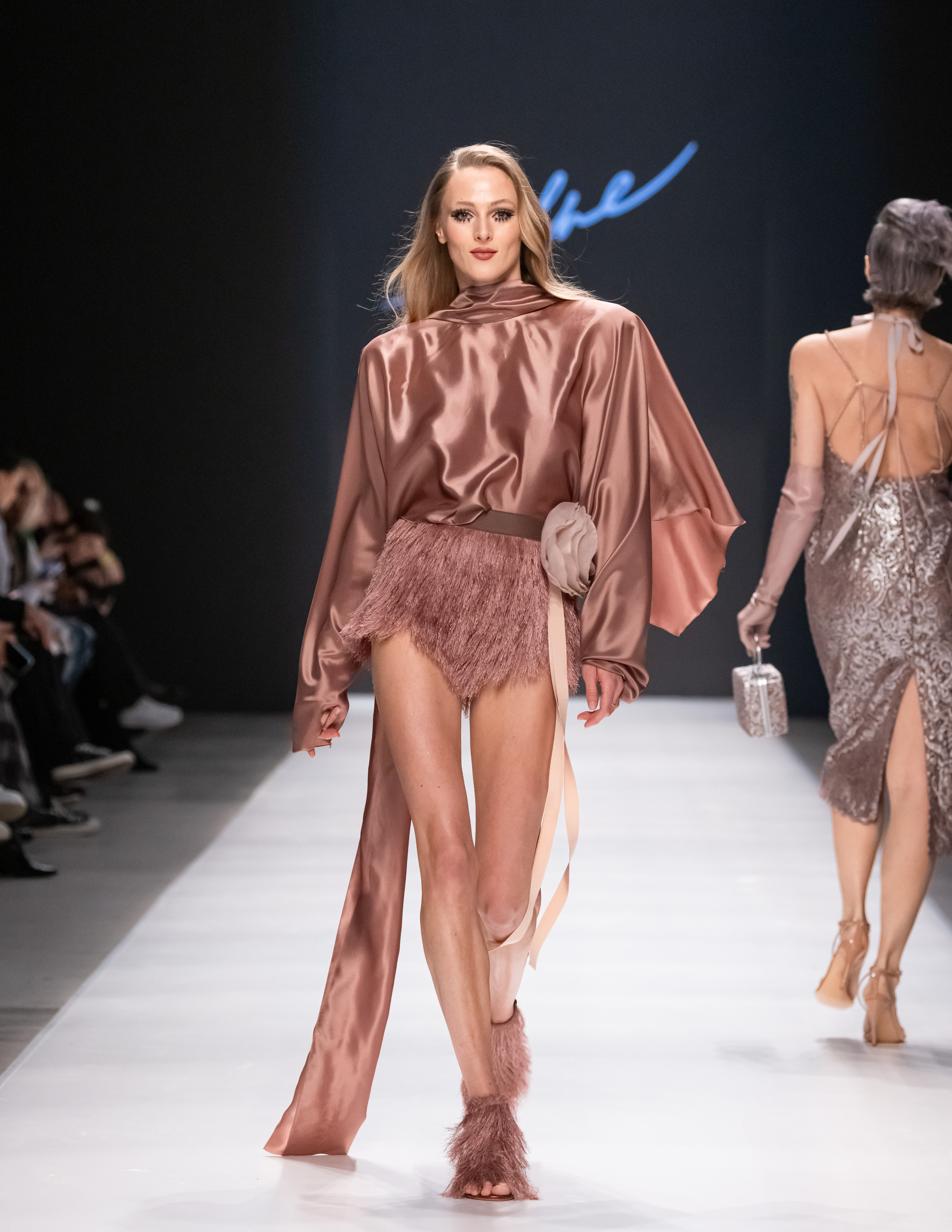 Graphic and shimmery eye makeup created mesmerising illusions in SOLANGEL and Lutani. Enhancing the runway designs with celestial allure, Timshee adapted a matte winged finish. From minimal but graphic lines of IANIS CHAMALIDY to frosty accents of EFREMOV, eyes became the focal point of beauty.