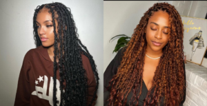 Bohemian locs give you that carefree, romantic vibe without the hassle. They combine the durability of faux locs with soft curls that don’t need much attention. so keep them fresh by using a leave-in conditioner on the curls and lightly separating them with your fingers. A satin bonnet at night will keep the locs intact and frizz-free.