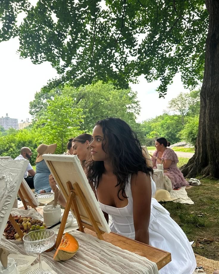 Black woman participating in a painting class via Tara B on Pinterest (original creator unknown, if this is your work, please contact us for credit)