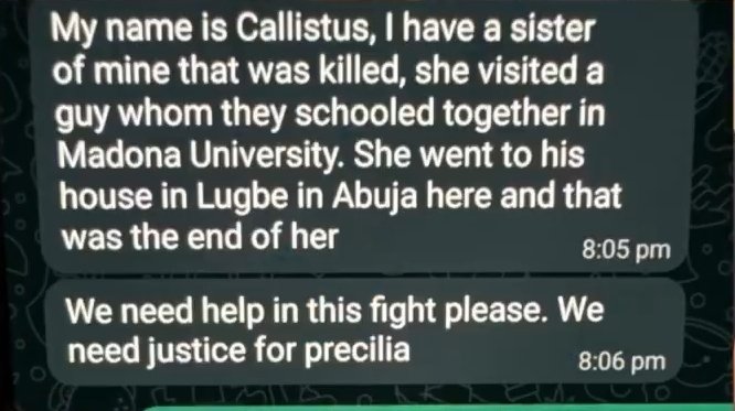 Priscilla’s relatives reached out to the activist, demanding justice, claiming she was murdered by a male friend identified as @Iamomoba on Instagram after he invited her over.