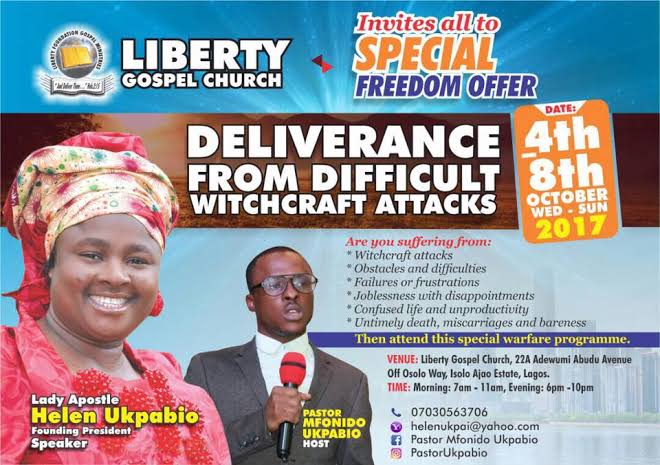 Flier of Ukpabio’s deliverance programs, via Facebook