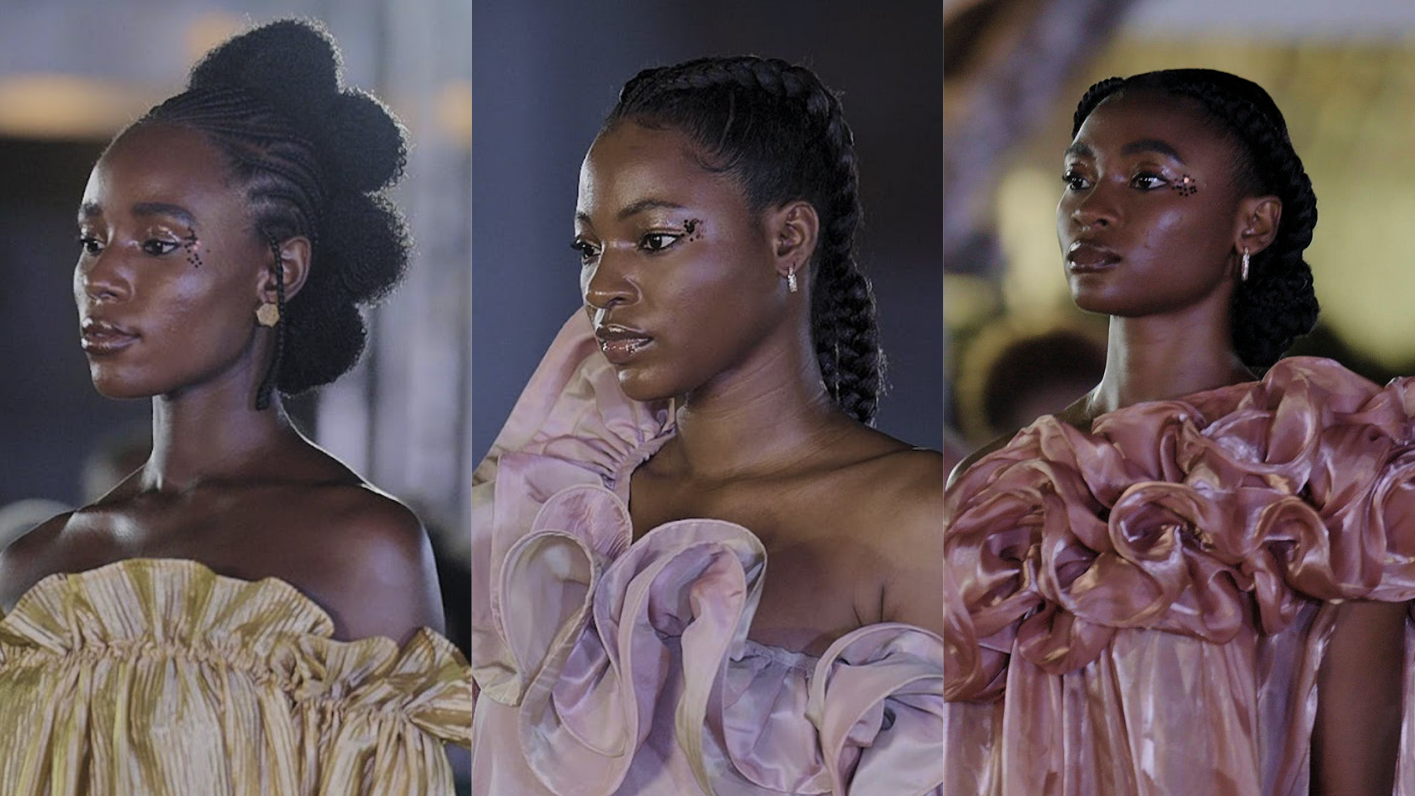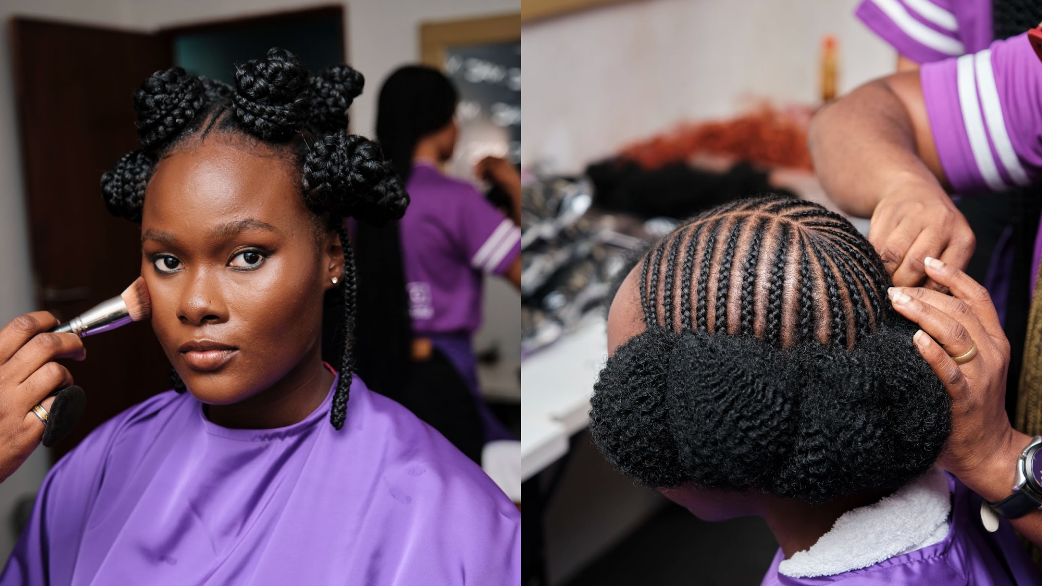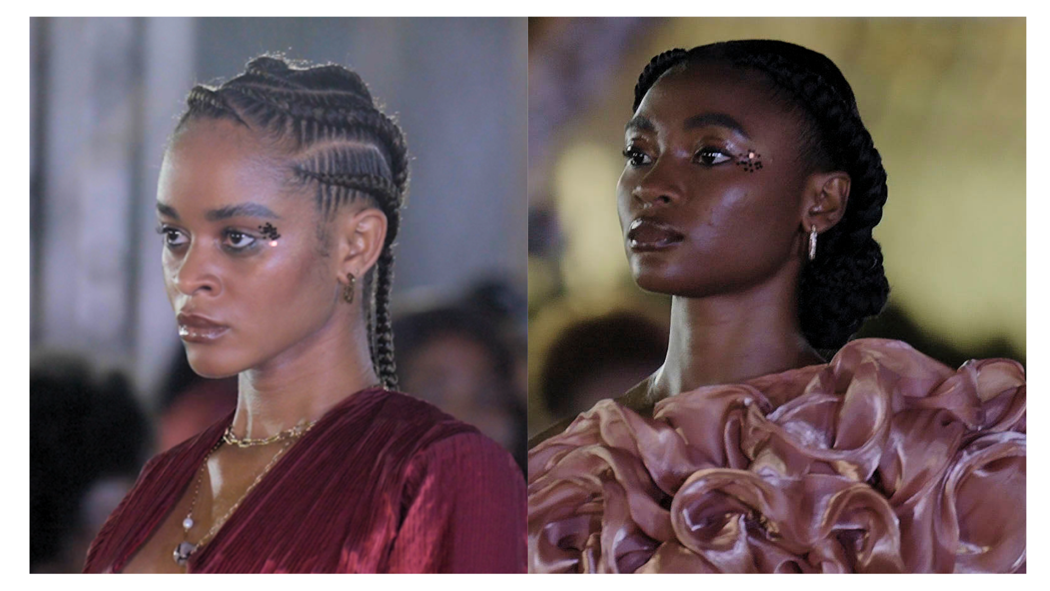 Out of the ordinary, Darling Nigeria transformed traditional hairstyles into elevated versions with braided crowns, disc-rolled attachments at the nape of the neck, and even turning short hair into full afros.