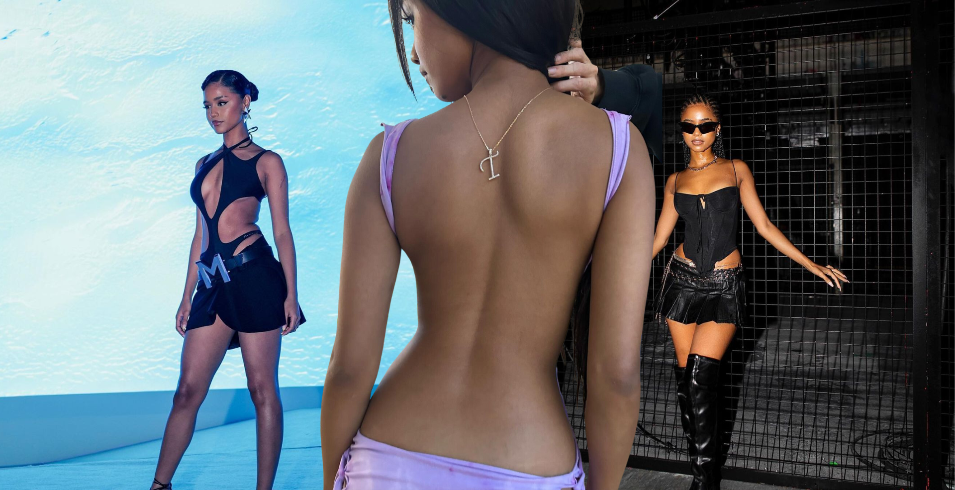 Tyla wearing a necklace with a bold pendant of her initial, via Instagram, Tyla wearing a cross necklace, via Instagram & Tyla wearing a gold choker for via Instagram