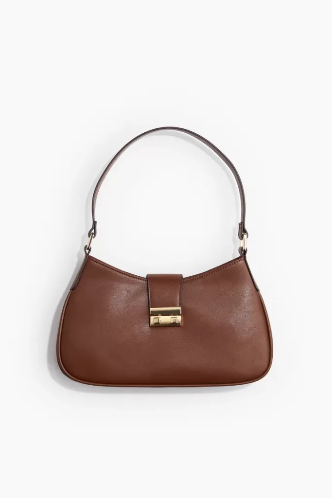H&M’s freshest collection showcases a shoulder bag that instantly captivates the eye. This bag is so chic that one might mistake it for a designer piece at first glance. Adorned with a graceful golden buckle, it comes in two sophisticated hues (classic black and rich brown), making it a versatile addition to any wardrobe.