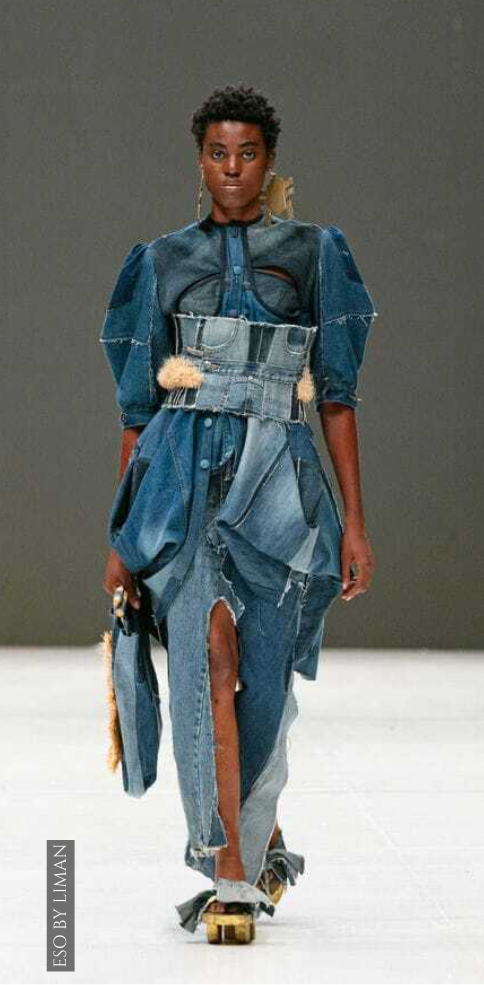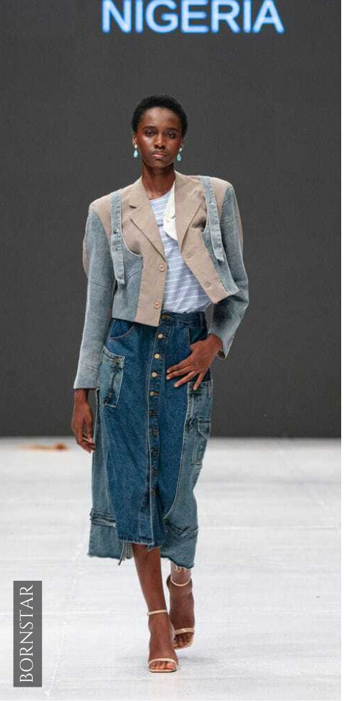 It might as well have been a consensus by eco conscious designers in the green access category, By Wuzzy, Born Star and Dust of the Earth who showcased upcycled pieces using denim fabric. Others like renowned Nigerian brand, Kilentar showcased what resembled the cross between an Aso Oke and a denim dress.