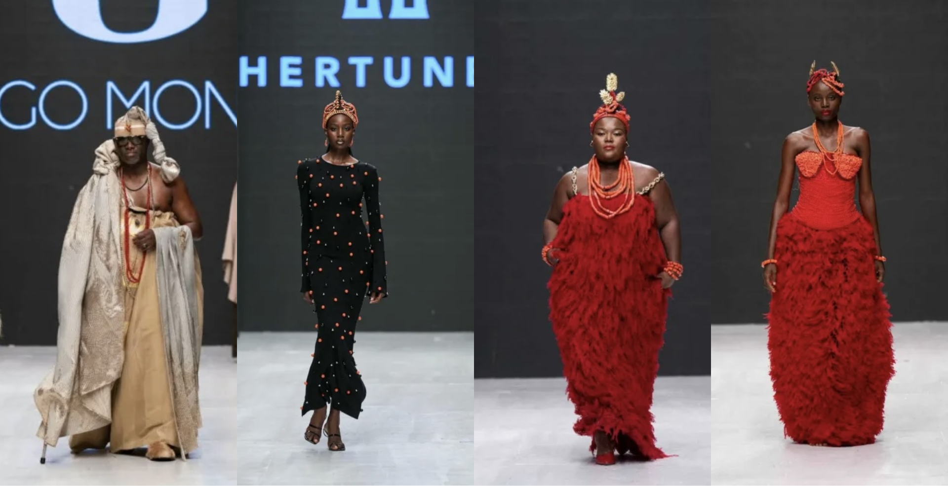 Designers leaned into their cultural identity, bringing modern twists to traditional Nigerian outfits. From Ugo Monye’s elegant agbadas with pearls and capes to Oshobor’s celebration of Edo culture. These collections showcased the beauty of heritage. Designers like Hertunba also joined the movement, proving that traditional aesthetics have a place in modern wardrobes.