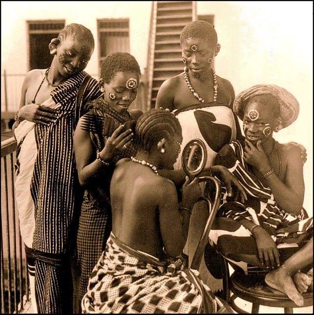 Image: A traditional gathering of women styling each others hair via Flicker