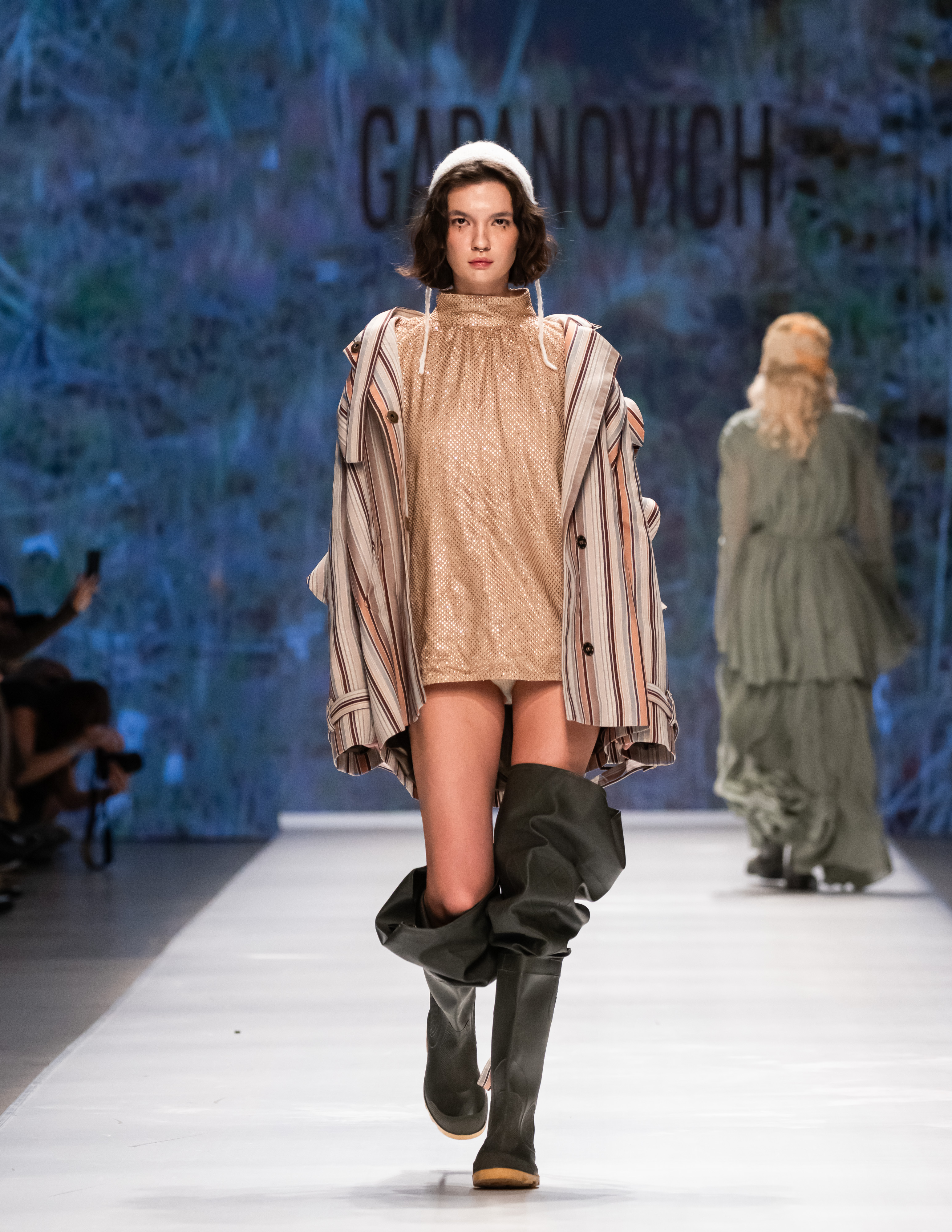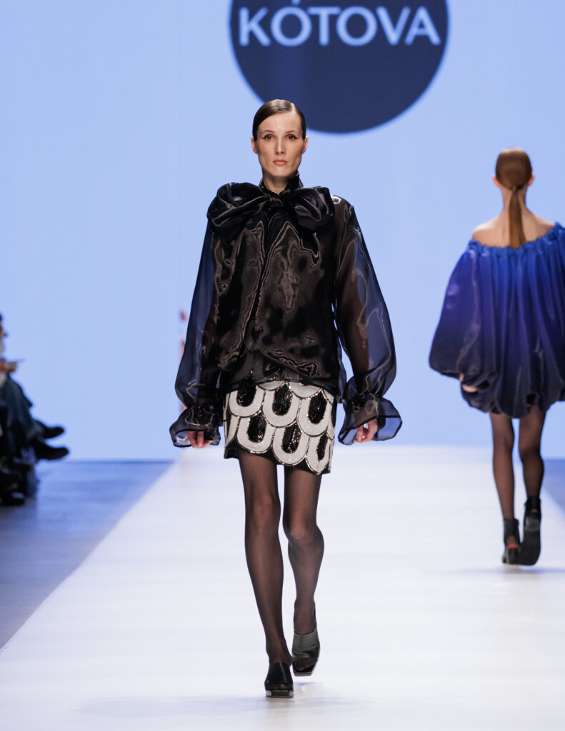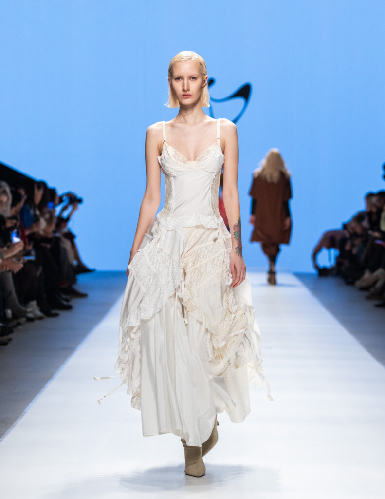 Some Moscow Fashion Week beauty trends were all about that fresh, just-out-of-the-shower look with wet yet elegantly styled hairdos framing faces with an air of sophistication. Whether it was buzz cuts seen in the MaisonESVE show (a personal favourite) or the sleek bobs on the AO brand, the silky hair trend was versatile. Sleek low buns flirted with the Irmasari Joedawinata, TOOMATCH and BURO UNIQUE runways, adding a lustrous touch to the runway ensembles.