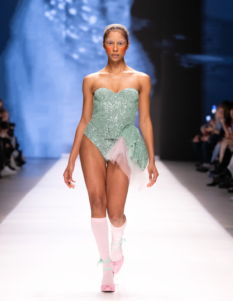 The runways were awash with ethereal hair textures, from finger curls to mermaid waves. Ivonne Garita and EMRE ERDEMOGLU exaggerated wet curls on their forehead. Geisha Designs opted for a more fluid style, from exaggerated mermaid curls to sleek wavy updos. Short styles weren’t left from the 90s waves by DaryaKipriyanova to the bob with a twist on the LI LAB runway embraced the fluidity of waves, adding an enchanting allure to the catwalk.