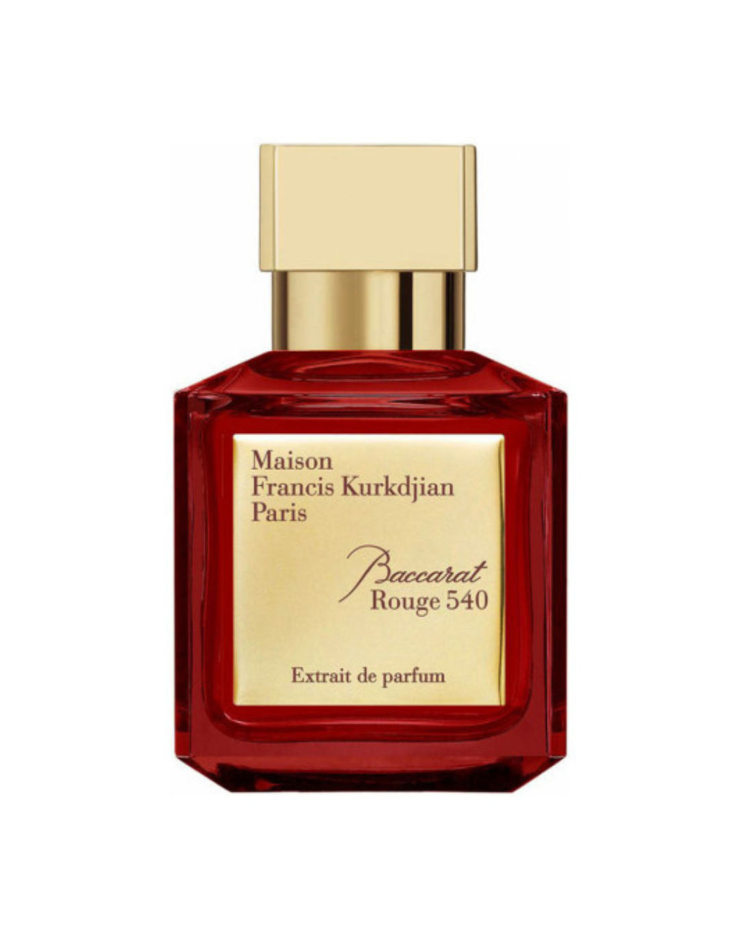 A bottle of Maison Francis Kurkdjian’s “Baccarat Rouge 540” against a white background via via fragrantica.com