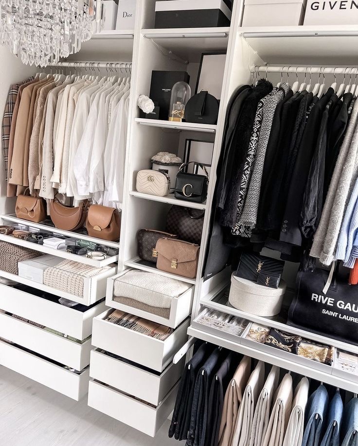 A decluttered wardrobe brightens up your mood giving you so much ease when picking outfits, via Pinterest
