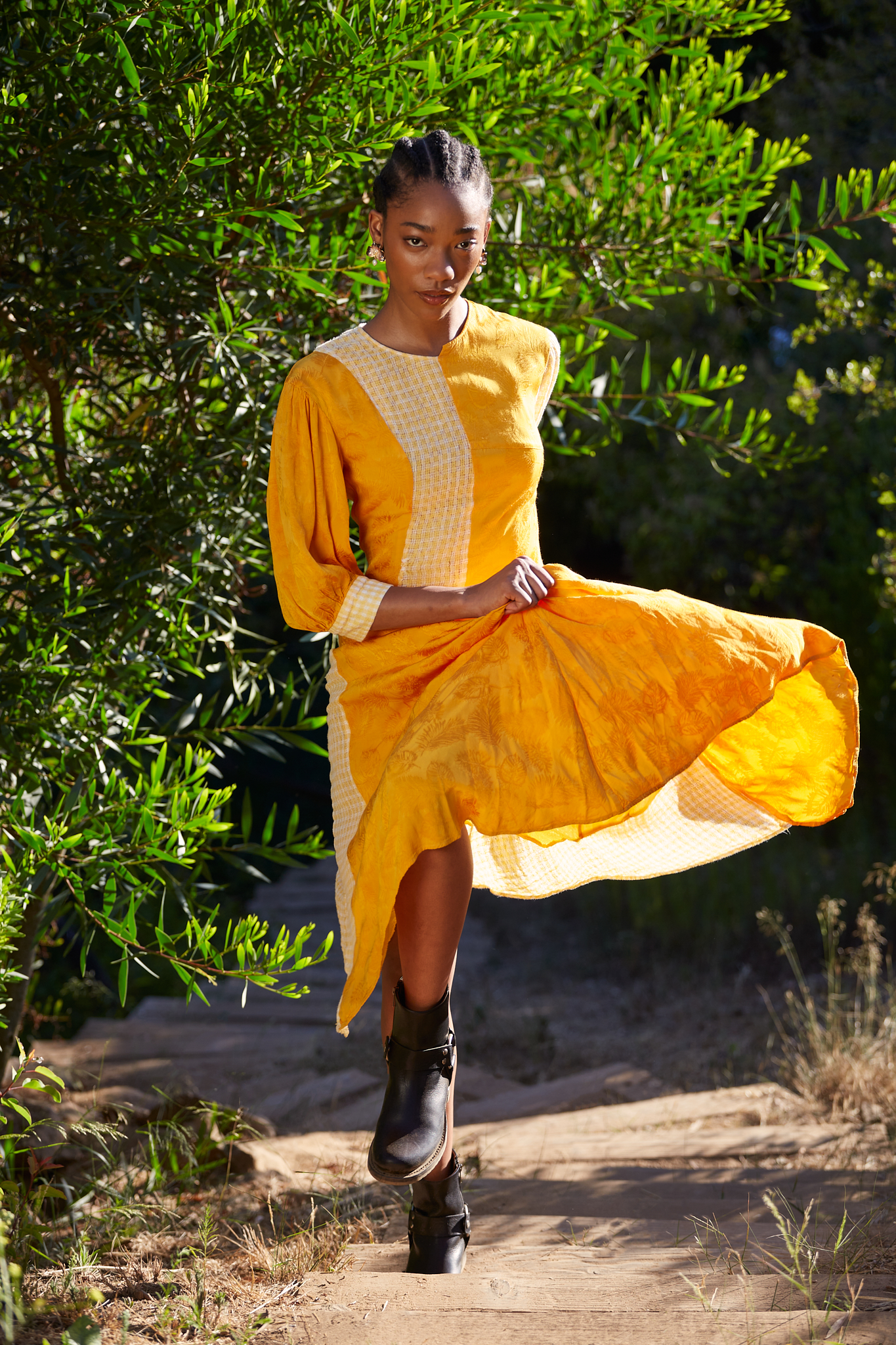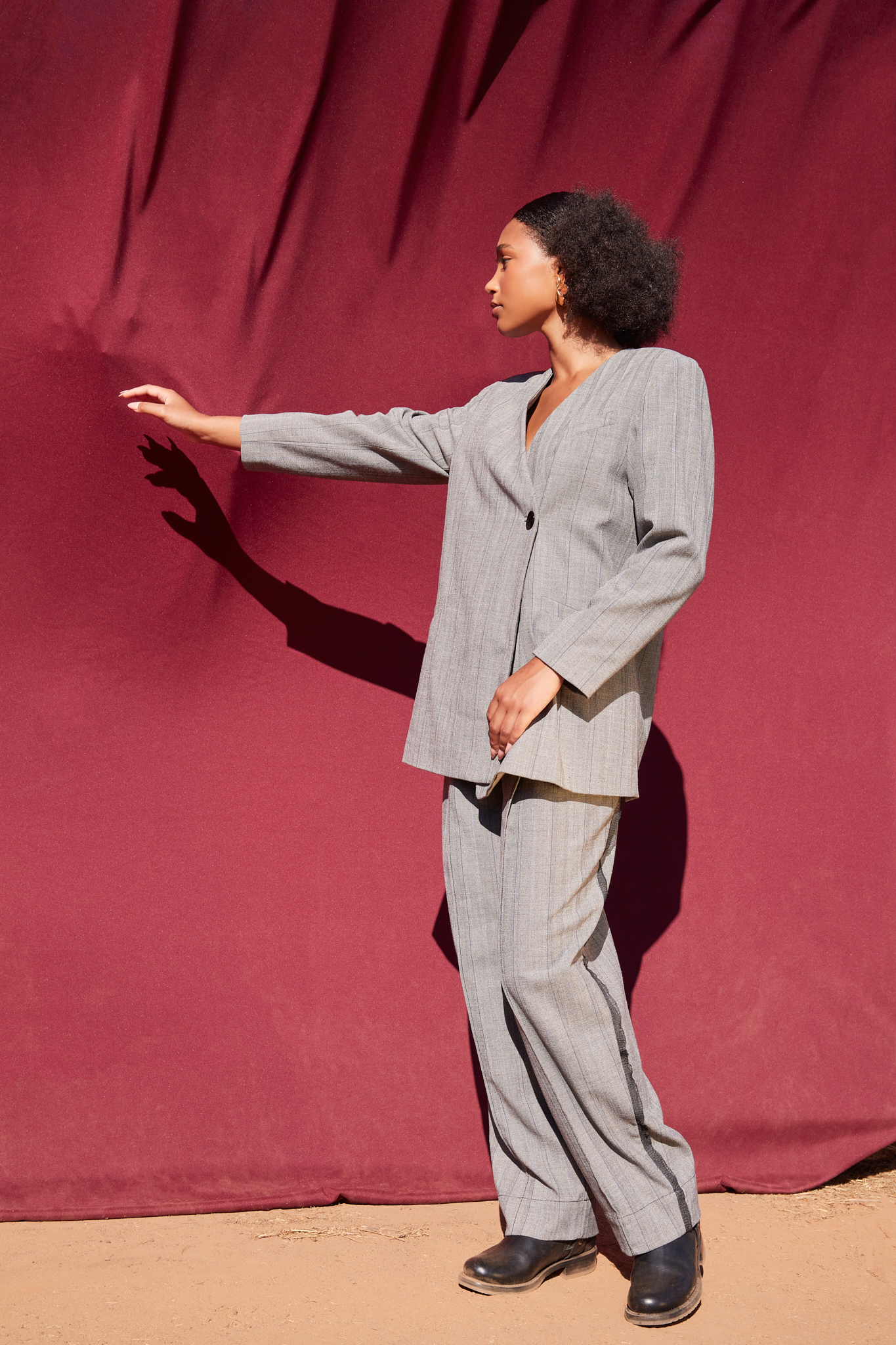 The styling, meticulously curated by Bridget Dickey. Featured outfits that complemented the models’ free-spirited energy. From the sleek grey Ganni herringbone suit, Jaela wore to the bold Rejina Pyo printed Dylan dress on Deasj. Every piece was a nod to understated elegance. Accessories from Ferezzi added a touch of luxe to the looks, with statement earrings that tied everything together seamlessly.