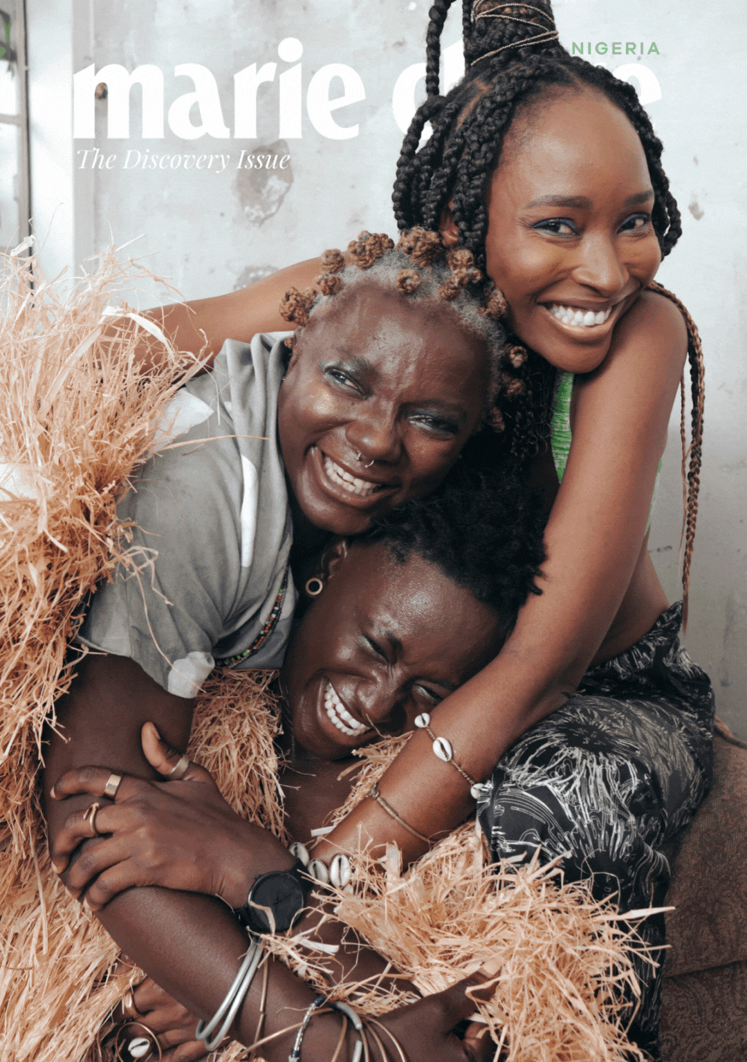 Ayodele wearing the Shawl kaftan from Eki Kere, Alexandra wearing the Raffia jacket from Eki Kere and Dolapo wearing the Lola Wave Waist pants and Ally’s bra top from Orange Culture. Jewellery from their personal collection.